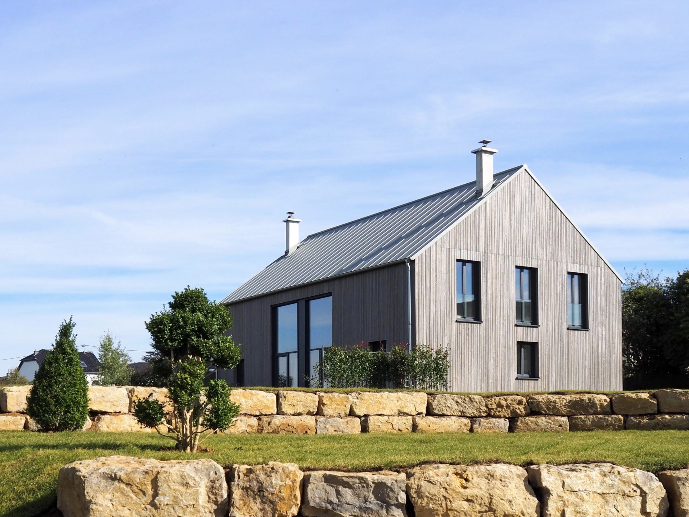 Der Kohnshof ist ein energiesparendes Haus und fügt sich gut in die Eifel-Landschaft mit Wiesen und Obstbäumen ein und ergänzt die historischen Gebäude der Umgebung harmonisch