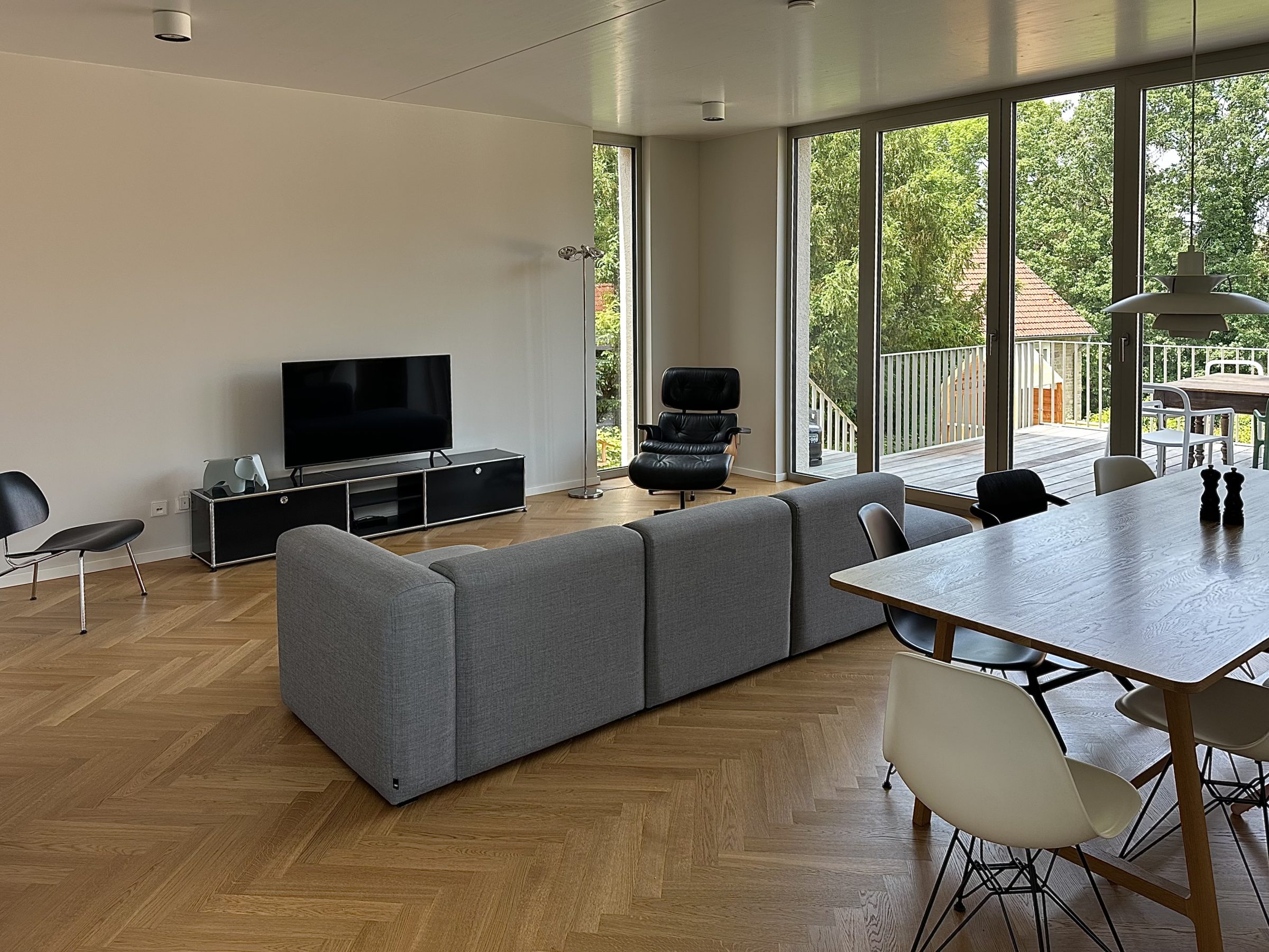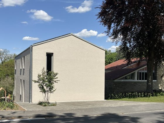 Auch mit Blick auf Nachhaltigkeit und energetische Bauweise punktet der Neubau. Hinter der Putzfassade verbirgt sich ein hocheffizientes Holzmassivhaus, dass Nachhaltigkeit mit vertrauter Ästhetik verbindet. Der Neubau ist darüber hinaus auch ein Beispiel gelungener Nachverdichtung.
